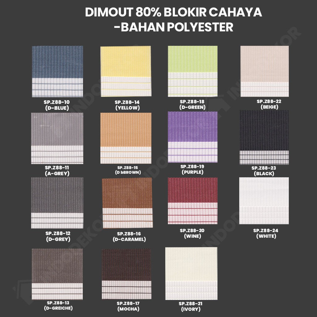 - Dimout: Bahan polyester, blokir cahaya ±80%