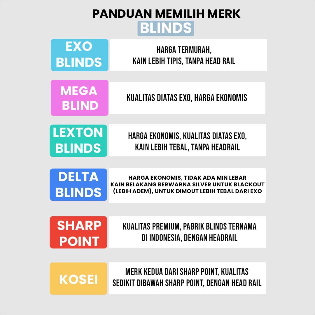 - Sharp Point → Premium, menggunakan headrail, kualitas terbaik